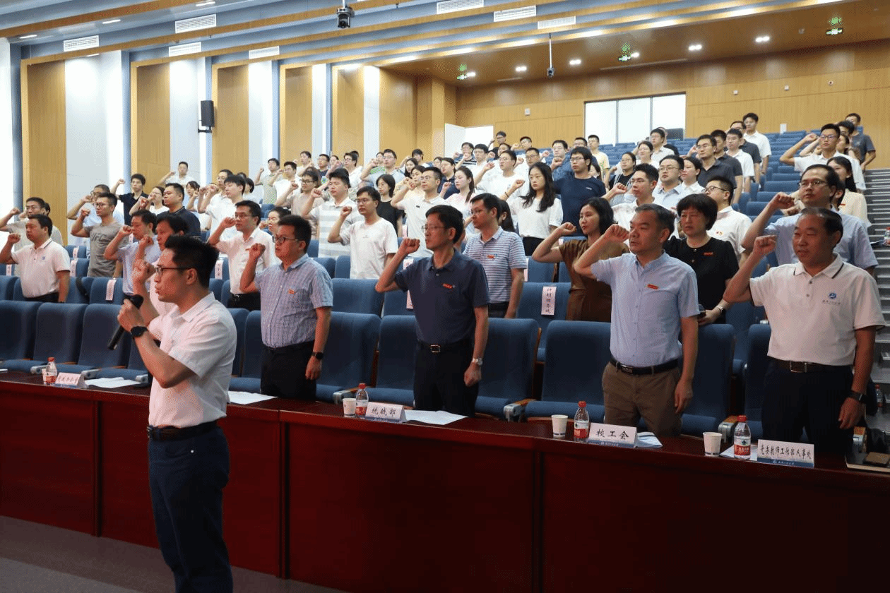 开班仪式最后,全体人员集体入职宣誓,奏唱武汉工程大学校歌。