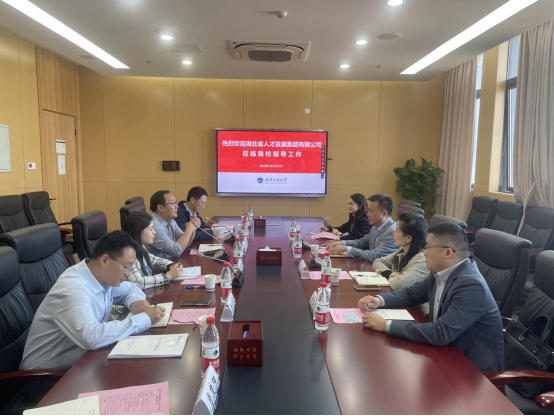 吕容涛对湖北省人才发展集团有限公司一行的到来表示热烈欢迎,并简要介绍了学校基本情况、办学特色、师资队伍建设情况,特别就学校在高层次人才引育方面的探索与实践作了说明。他希望双方以此次会谈为契机,融合资源,发挥优势,在高层次人才引进、人才服务保障等领域深化合作。